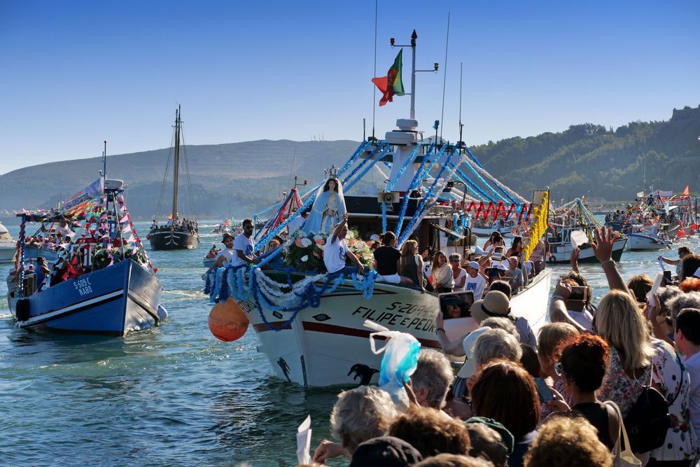 Uma hora depois, a procissão sai da igreja para transporte fluvial da imagem da Senhora do Rosário para a capela na Península de Troia.