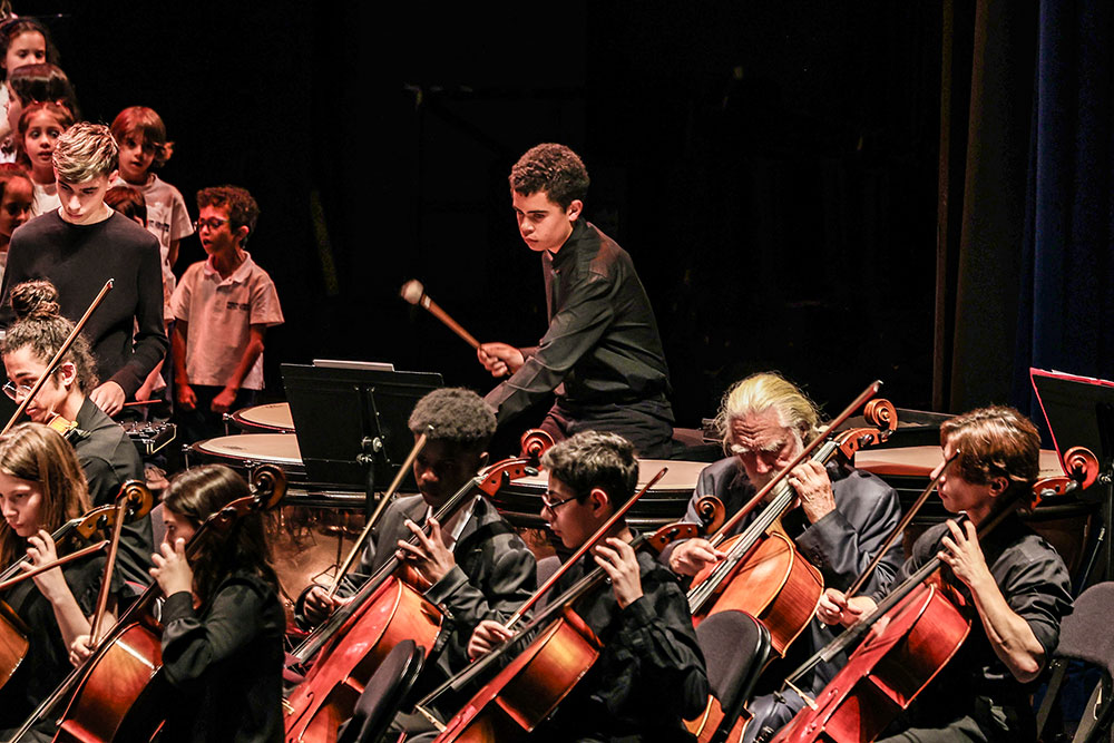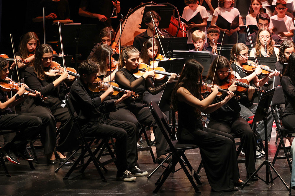 A orquestra, formada por alunos das escolas de música reforçados por profissionais, juntou 50 elementos, enquanto o coro integrou 185 alunos do 1.º ao 6.º ano de escolaridade. O espetáculo contou com as participações da Academia Luísa Todi, da Academia de Música de Almada, dos conservatórios regionais de Setúbal, Palmela e Covilhã, do Coral Infantil de Setúbal e da Escola Profissional de Artes da Covilhã.