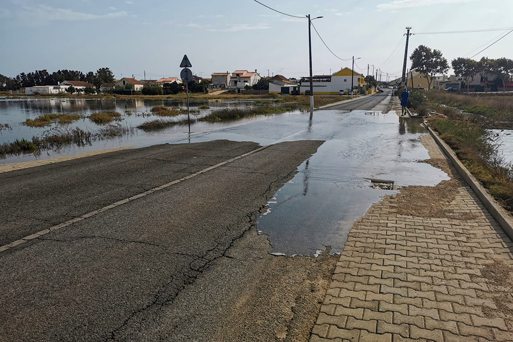Uma maré cheia com 3,90 metros de altura motivou o galgamento das águas do Estuário do Sado, formando um lençol de água que submergiu parte da Estrada de Santo Ovídeo e entrou em algumas habitações localizadas naquela zona da freguesia do Sado.