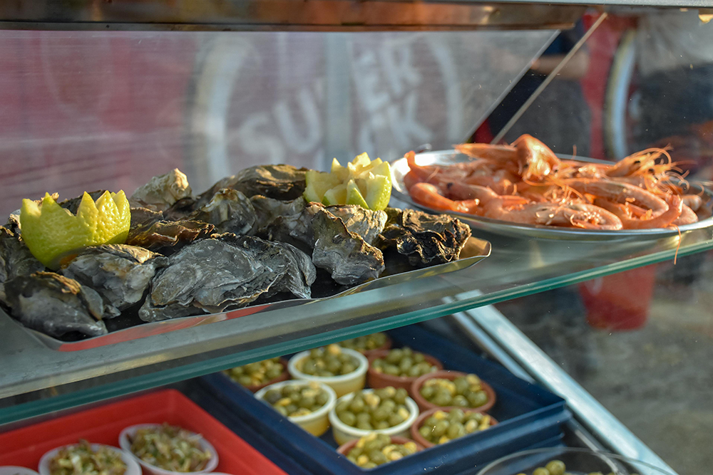 Ostras, mariscos, choco frito, feijoada de choco, arroz de lingueirão, pipis e pica-pau, entre outros petiscos, foram servidos, nos dias 24, 25 e 26, nas tasquinhas de gastronomia, um dos principais pontos de interesses do certame, realizado na Herdade da Mourisca.