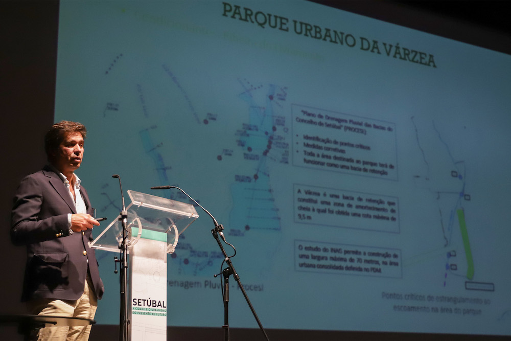 Já o coordenador do Gabinete de Imagem e Requalificação Urbana da Câmara Municipal de Setúbal, Nuno Viterbo, partilhou o projeto de transformação da Várzea numa bacia de retenção para prevenção de cheias, em resposta aos desafios das alterações climáticas, aliada a um parque urbano para usufruto da população.