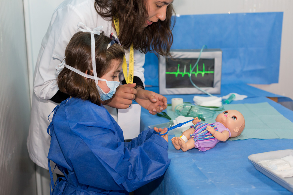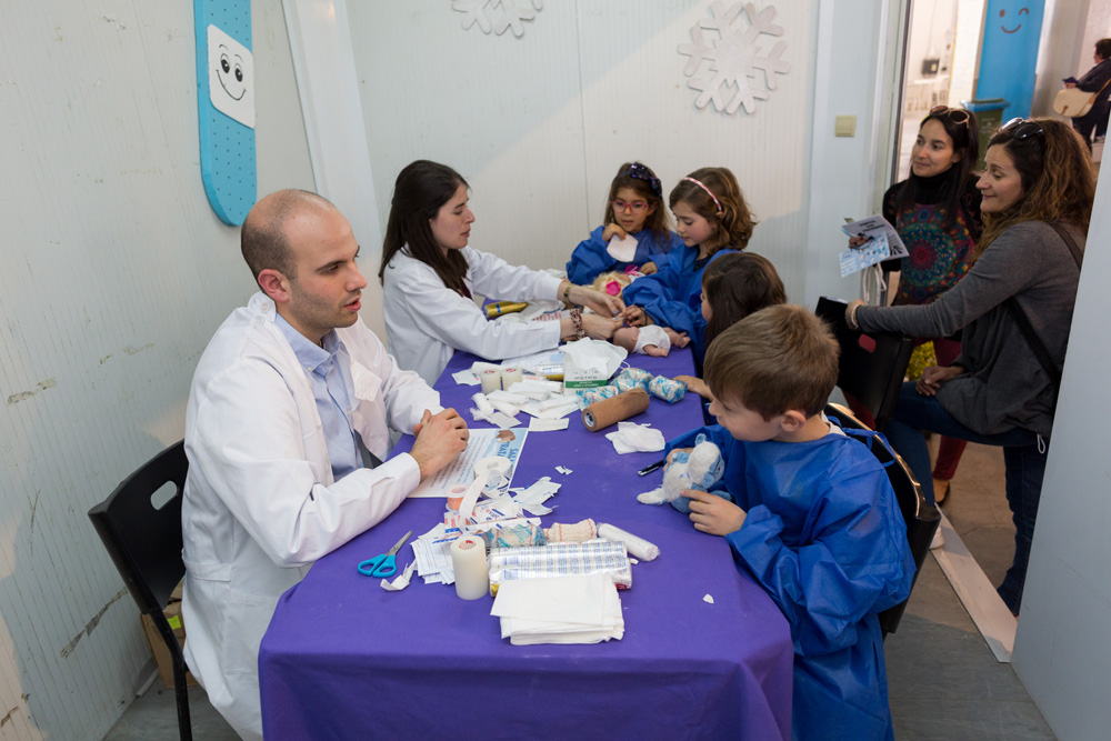 O circuito de saúde especialmente preparado para os mais novos incluiu a descoberta de várias valências hospitalares, como a sala de imagiologia, o laboratório de análises clínicas e o serviço de desinfeção, assim como o bloco de cirurgia, a sala de tratamento e a farmácia.