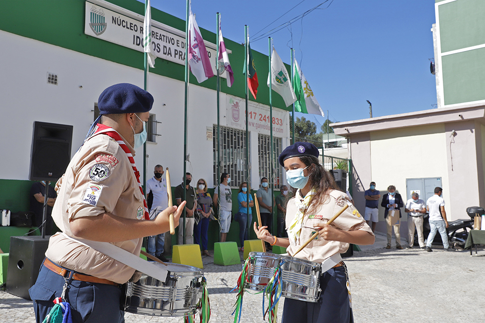 A cerimónia comemorativa dos 46 anos de existência do Núcleo Recreativo e Desportivo Ídolos da Praça começou com o hastear da bandeira, num momento com acompanhamento musical pela fanfarra do Agrupamento 64 de São José, do Corpo Nacional de Escutas.