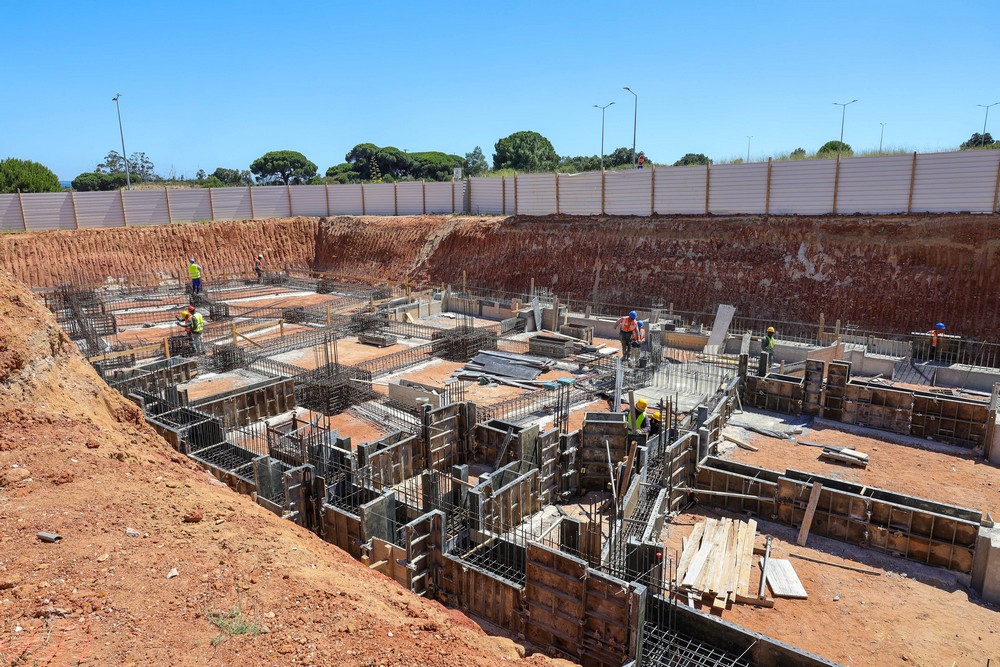 A obra teve início há três meses e no terreno já estão colocadas um total de 240 estacas – que não estavam inicialmente previstas, mas o ensaio geotécnico revelou que eram necessárias para suster o solo – e algumas vigas de fundação.