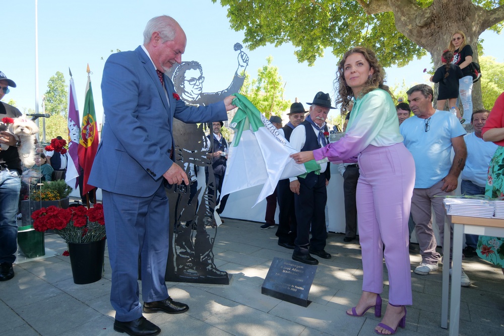 Os presidentes da Câmara Municipal de Setúbal, André Martins, e da Junta de Freguesia de Azeitão, Sónia Paulo, inauguraram em 25 de abril uma peça escultórica de homenagem a José Afonso, em Vila Nogueira, no âmbito das comemorações dos 49 anos do 25 de Abril.