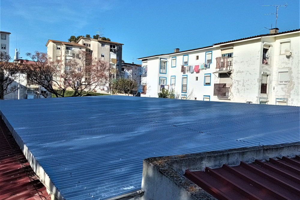 Os novos painéis de chapa zincada foram sobrepostos aos preexistentes, reforçando o isolamento e prevenindo o surgimento de novas incidências.