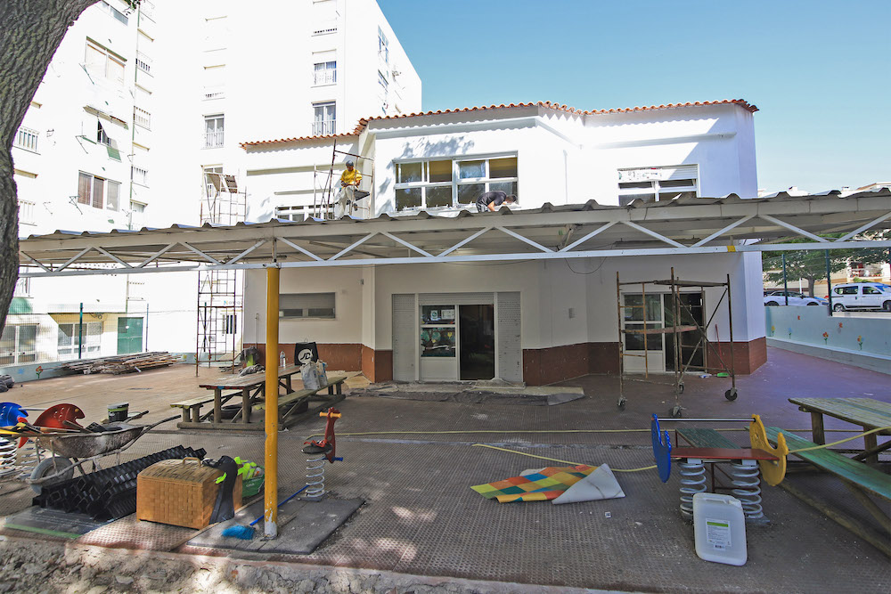 Esta requalificação contempla, igualmente, a lavagem e o tratamento do telhado, a execução de novos sistemas de drenagem do espaço de jogo e recreio, a requalificação da zona do equipamento lúdico e a substituição do piso exterior degradado.