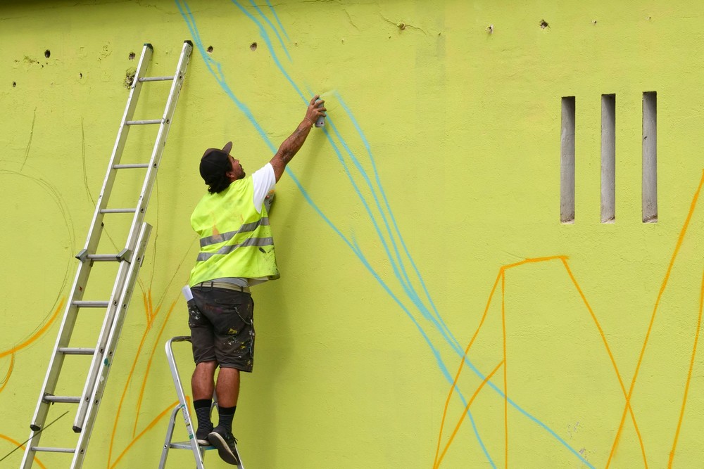 O artista, que se identifica com o género neossurrealista, explica ainda que por todo o mural, com as dimensões de 120 metros de comprimento e seis de altura, “vão pautar vários tons de verde, com muitos contrastes surrealistas que vão fazer sobressair plantas”.