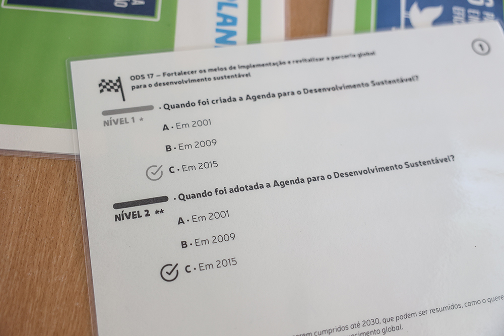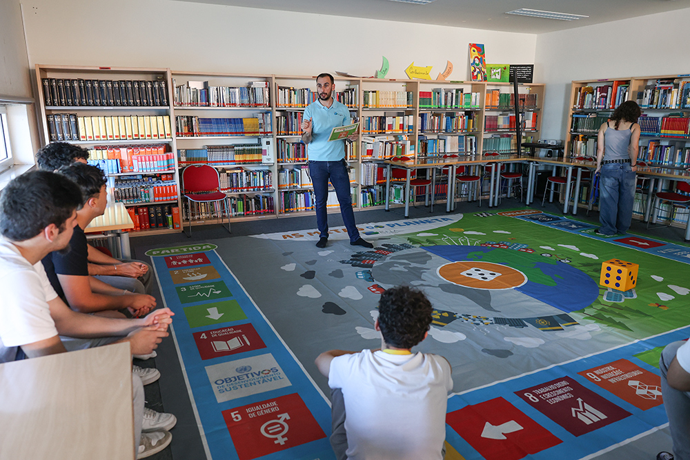 Os participantes tiveram ainda a possibilidade de jogar o jogo de chão “Metas do Planeta”, dinamizado pela ENA, no âmbito do projeto Maletas da Sustentabilidade, que procura ajudar os mais novos a familiarizarem-se com os Objetivos de Desenvolvimento Sustentável.
