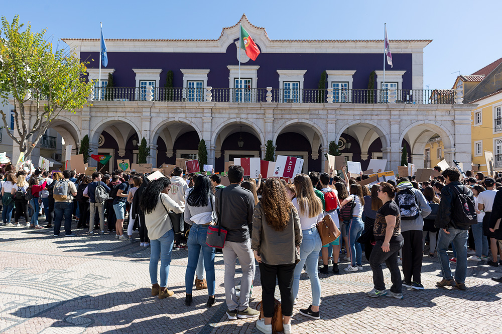 “Queremos Justiça Climática”, “Não existe Planeta B”, “Não comemos Petróleo, não respiramos dinheiro. SOS pelo clima” foram algumas das mensagens escritas em cartazes que os alunos dos ensinos básico e secundário da rede pública e privada de Setúbal e Palmela ergueram junto do edifício dos Paços do Concelho.
