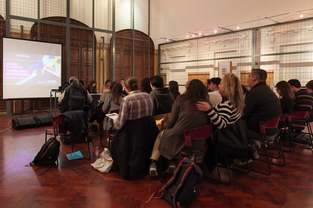 A oficina colaborativa “Juventude e Participação” teve também como oradores o presidente da Direção do Conselho Nacional de Juventude, André Cardoso, e o membro da direção da RATO – Associação para a Divulgação Cultural e Científica Nuno Carvalho.