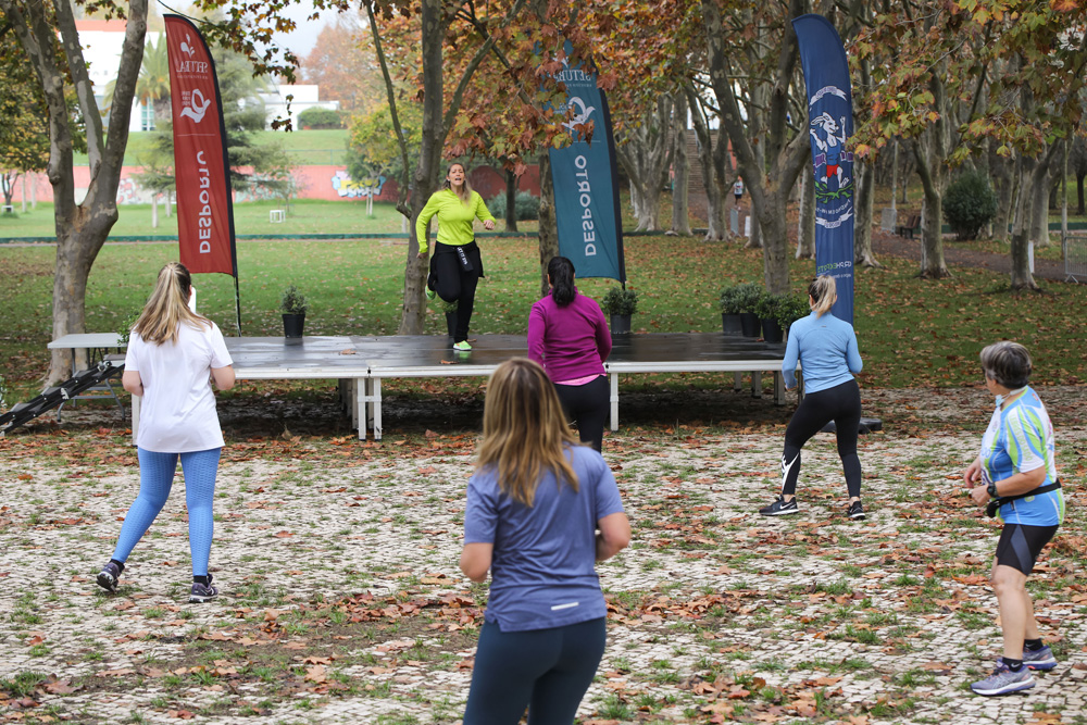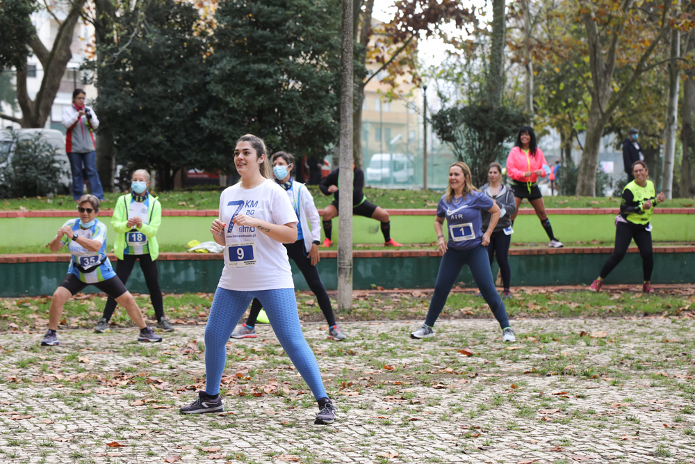 Antes do arranque da corrida e da caminhada, no Parque de Vanicelos, em Setúbal, local de partida e chegada dos atletas, os participantes tiveram uma aula de aquecimento proporcionada pelo Nutriset Gym.