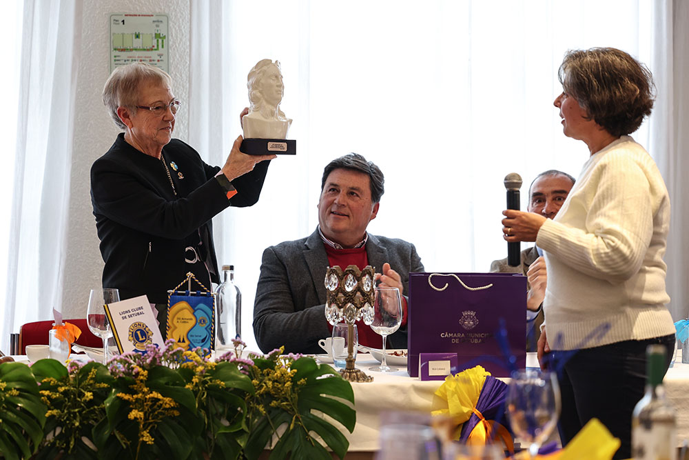 No encontro, no qual a autarca agraciou o Lions Clube de Setúbal com uma oferta municipal – um busto de Luísa Todi –, contou com a presença, entre outras individualidades convidadas, do presidente da União das Freguesias de Setúbal, Rui Canas.