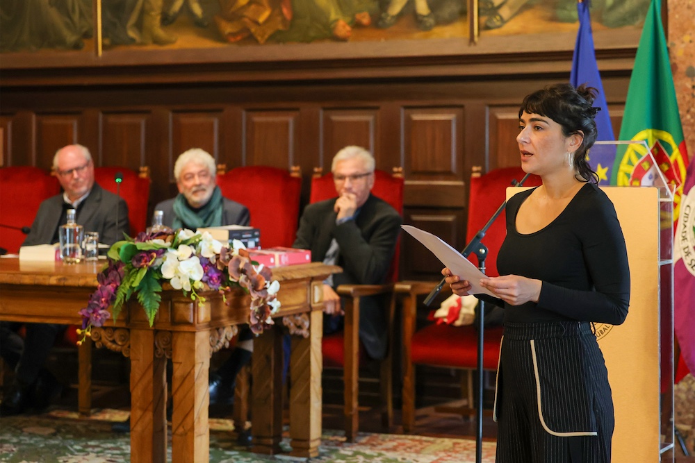 A sessão teve início com uma atuação do coro feminino TuttiEncantus, que cantou três músicas de Zeca Afonso, “Canção de Embalar”, “Índios da Meia Praia” e “Grândola, Vila Morena”, esta entoada em conjunto pela plateia, e terminou com o presidente da Câmara a entregar aos presos políticos que se encontravam na sala cópias das suas fichas na PIDE.