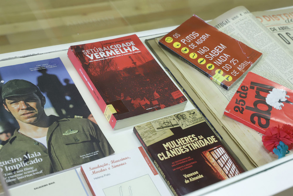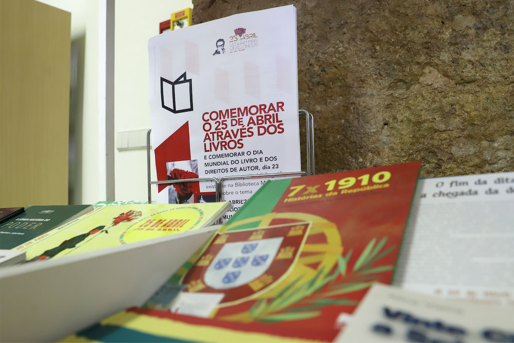 A mostra bibliográfica, patente ao público até 7 de maio, de modo a incluir ainda as celebrações do 1.º de Maio, Dia do Trabalhador, conta com um total de cerca de 60 títulos relacionados com o 25 de Abril, entre livros destinados ao público infantil e aos adultos.