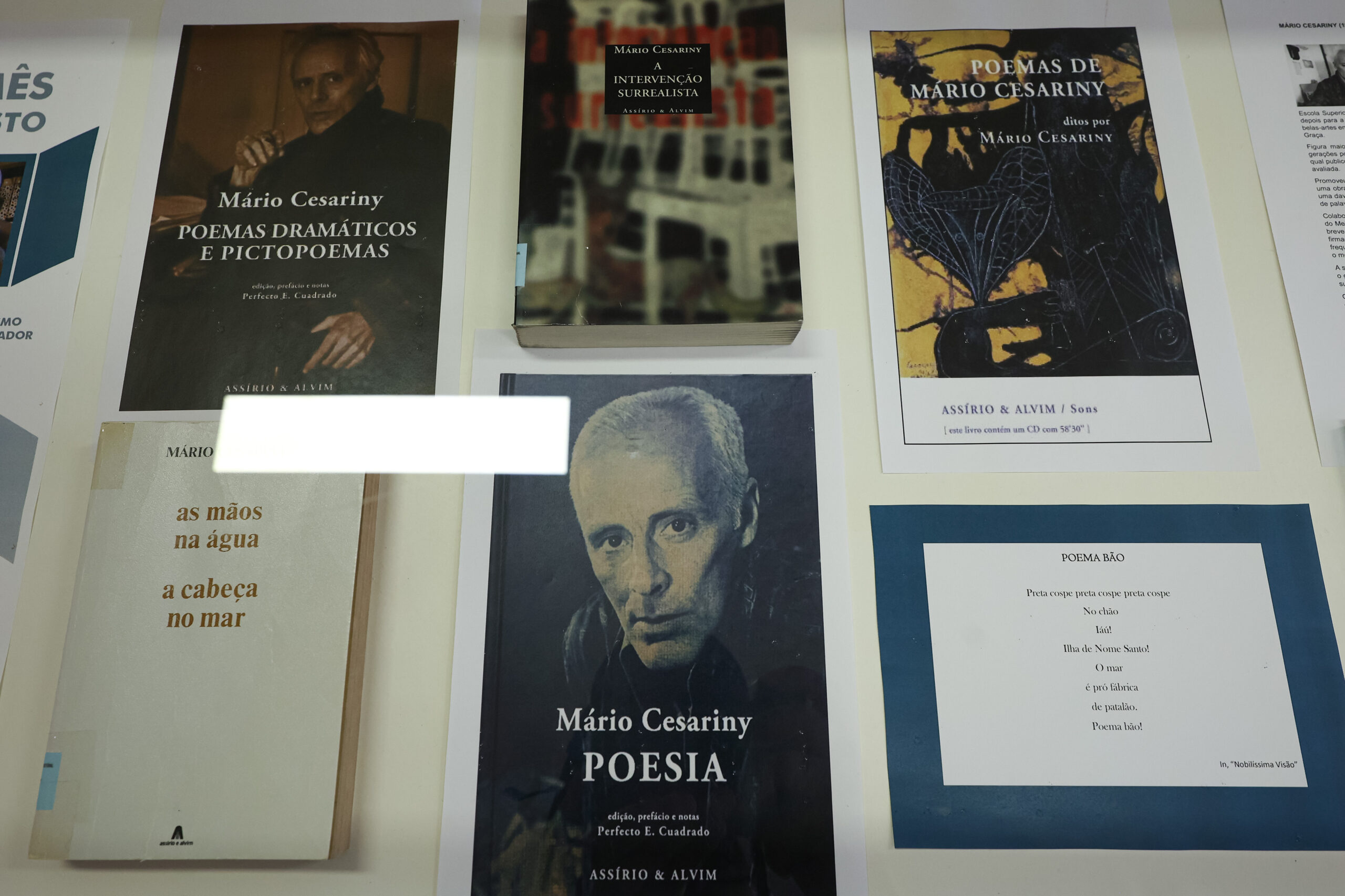 A mostra, organizada pela Câmara Municipal, divulga as obras literárias de Mário Cesariny existentes na biblioteca, além de integrar uma biografia em vídeo realizado localmente.