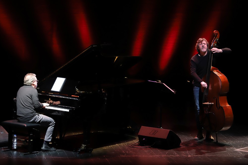 No palco da principal sala de espetáculos da cidade, à noite, Mário Laginha esteve acompanhado de Nuno Oliveira e Bernardo Moreira, companheiros do projeto a três que nasceu durante a pandemia para a criação de temas que associam o jazz às músicas portuguesa, clássica e africana.