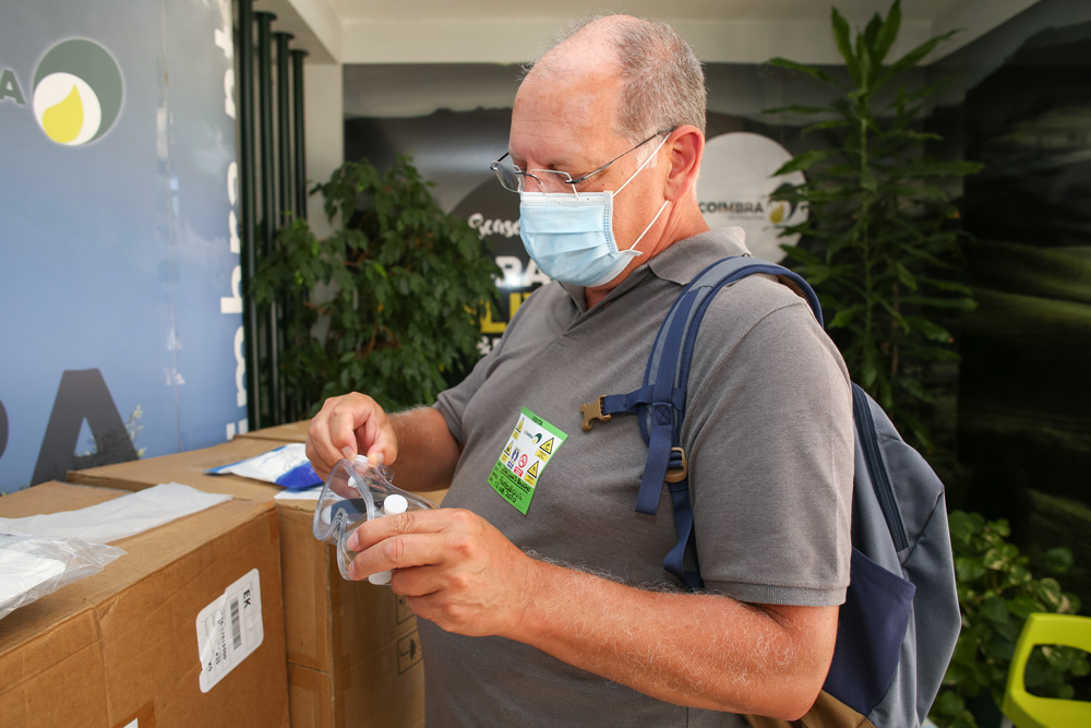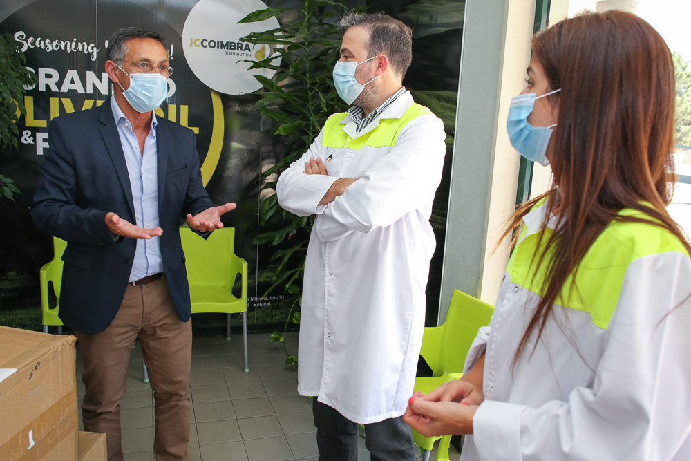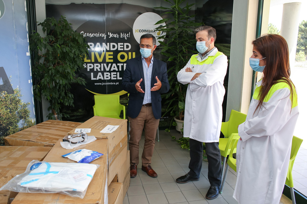 O vereador da Câmara Municipal de Setúbal com o pelouro da Proteção Civil, Carlos Rabaçal, recebeu um conjunto de três mil máscaras KN95, três centenas de óculos e três centenas de fatos de proteção, num momento simbólico realizado nas instalações da empresa dedicada à comercialização e distribuição de azeites e óleos alimentares.