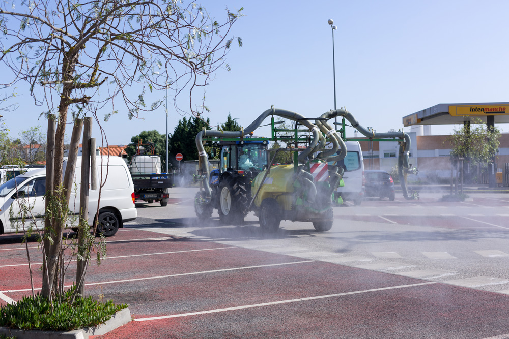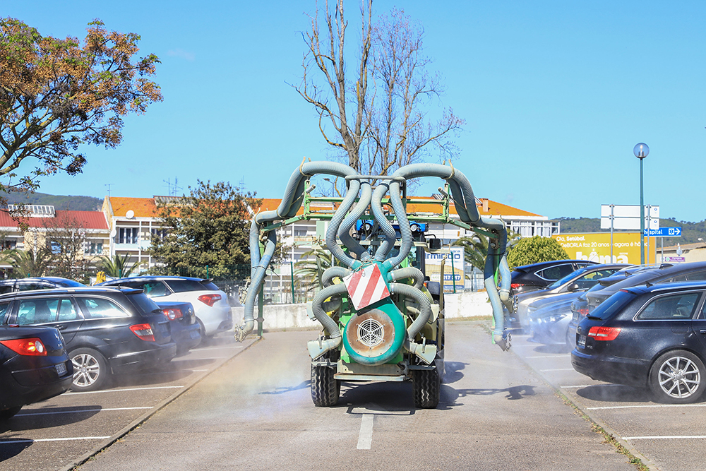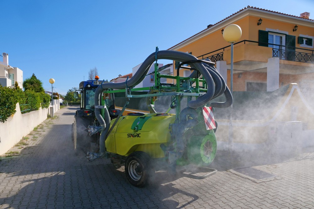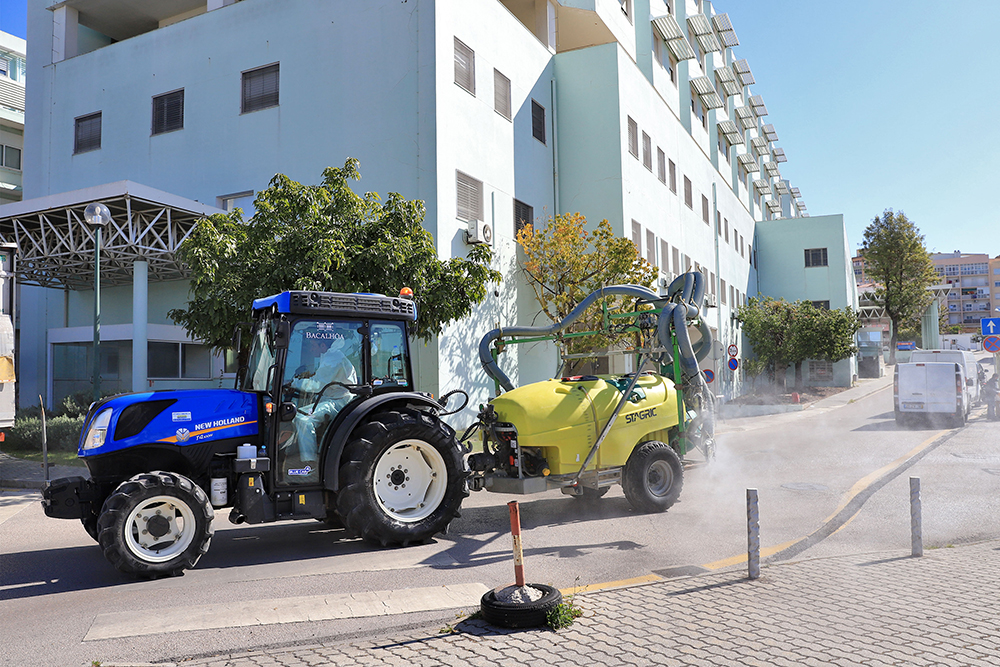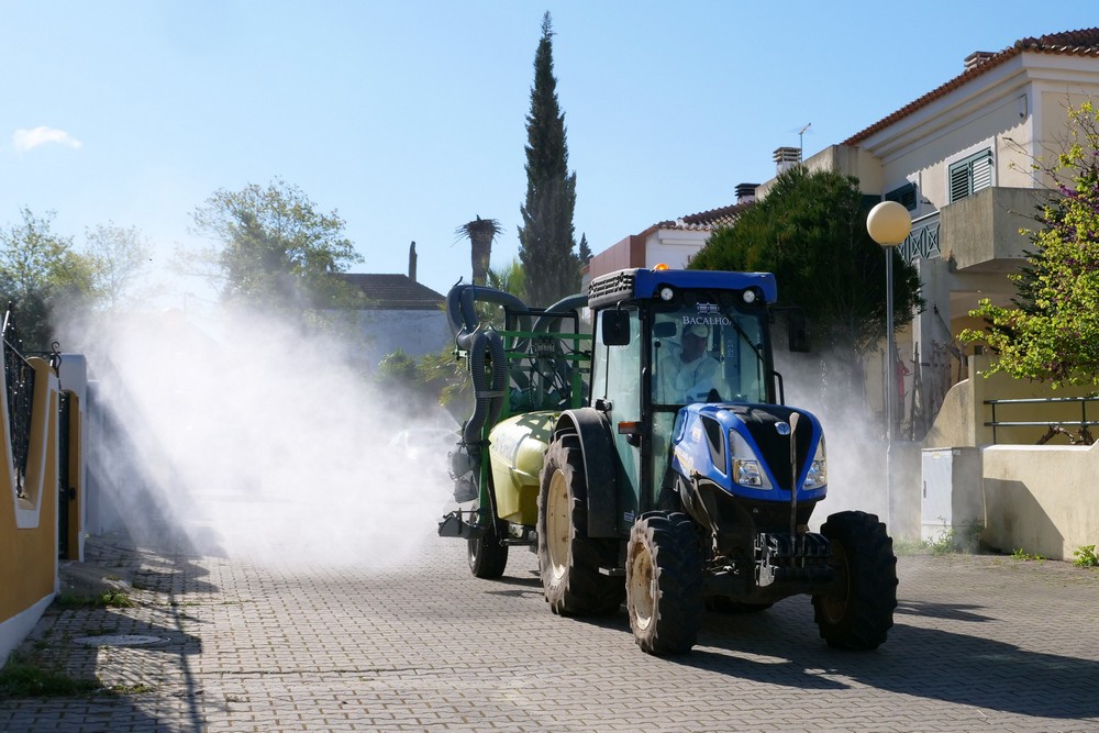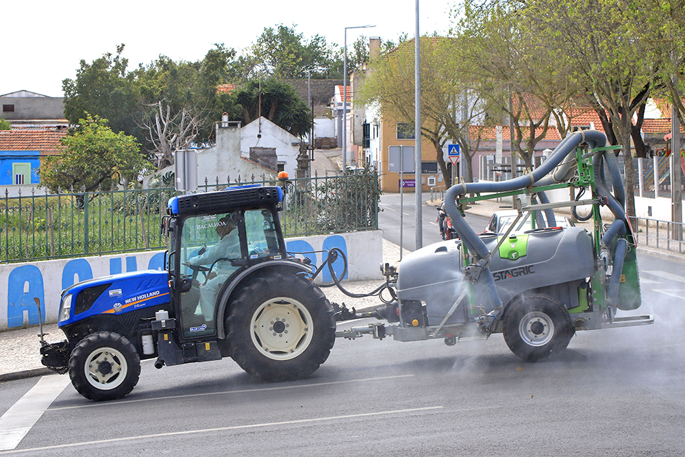 A higienização de todo o espaço público do concelho de Setúbal está a ser feita com recurso a quatro tratores agrícolas, permitindo aumentar a capacidade de desinfeção e reduzir os riscos de contaminação e de infeção pela Covid-19.