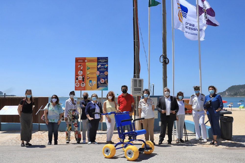 A cerimónia de hastear da bandeira de Praia Acessível contou com a presença de responsáveis do Instituto Nacional para a Reabilitação, do Instituto da Conservação da Natureza e das Florestas, da Agência Portuguesa do Ambiente, do Turismo de Portugal, do Porto de Setúbal e da Iacess, empresa que forneceu a cadeira e o andarilho anfíbios.