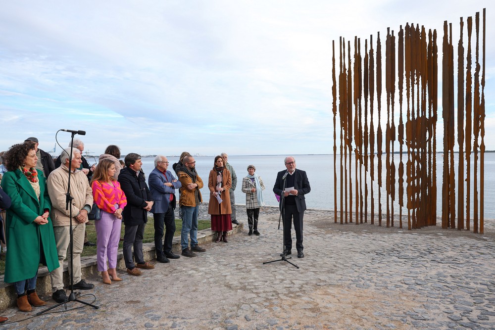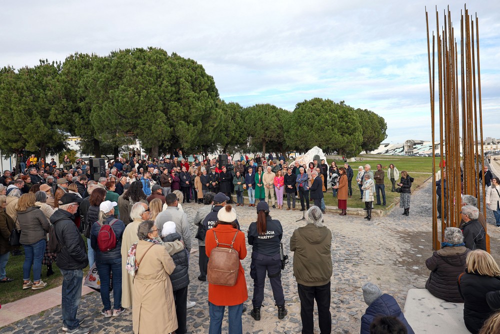 O memorial instalado junto do Rio Sado, “enquadramento perfeito para a peça que o escultor setubalense Ricardo Crista concebeu e construiu”, sublinhou o presidente André Martins, é uma obra com um caráter dinâmico que cria a ilusão de estar em constante movimento, consoante a posição em que o observador se encontre.