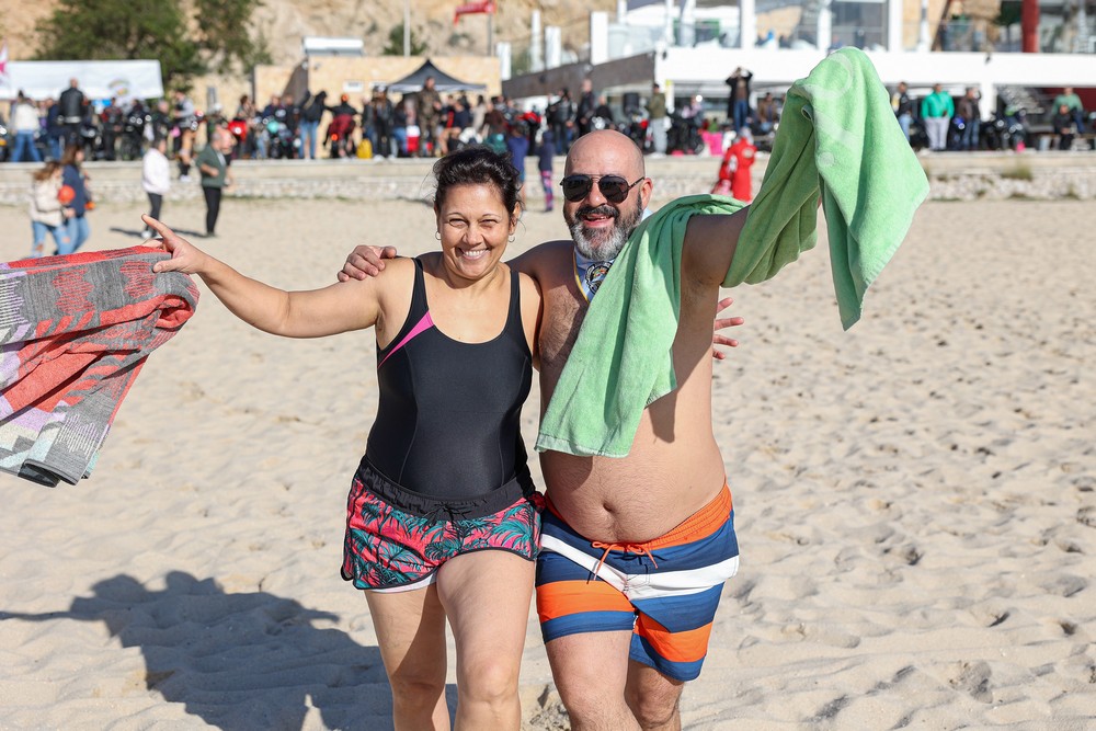 Mais de trezentas pessoas participaram, dia 1, de manhã, na Praia da Figueirinha, no Mergulho Motard Solidário 2024, evento de cariz solidário, com a presença do presidente da Câmara Municipal de Setúbal, André Martins.