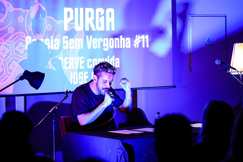 Na Casa do Largo, a noite de 3 de março proporcionou mais uma sessão do ciclo Poesia Sem Vergonha, dinamizada por Nerve e o convidado José Algo, para apresentar o espetáculo “Purga”, o qual incluiu um momento de microfone aberto para participação livre do público.