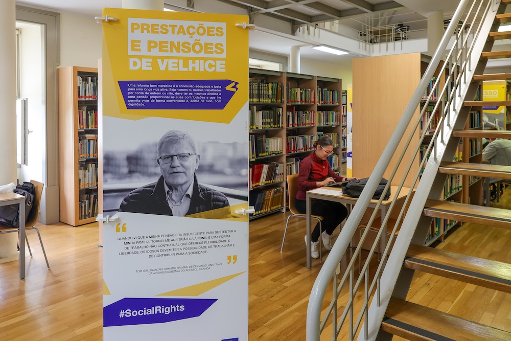 A segunda exposição, comemorativa do Dia da Europa, destaca os 20 princípios do Pilar Europeu dos Direitos Sociais, agrupados em áreas como igualdade de oportunidades, condições de trabalho justas e proteção social, através de painéis informativos que sensibilizam para os direitos dos cidadãos europeus.