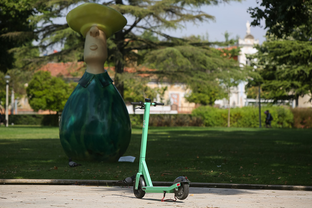 Tomás Silva, de 14 anos, acaba de terminar uma aula no período da manhã. Hoje, em vez de andar, decide voltar a casa em duas rodas, utilizando, para isso, uma trotineta elétrica que aguarda, estacionada nas imediações do Convento de Jesus, por um novo utilizador.