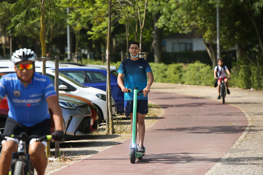 “Estava aqui estacionada e decidi utilizar porque não queria ir a pé para casa”, adianta o jovem, que elogia esta nova mobilidade sustentável. “Acho engraçado! Ajuda bastante, sobretudo quem anda a pé para todo o lado, e só vejo coisas boas com estas trotinetas em Setúbal.”
