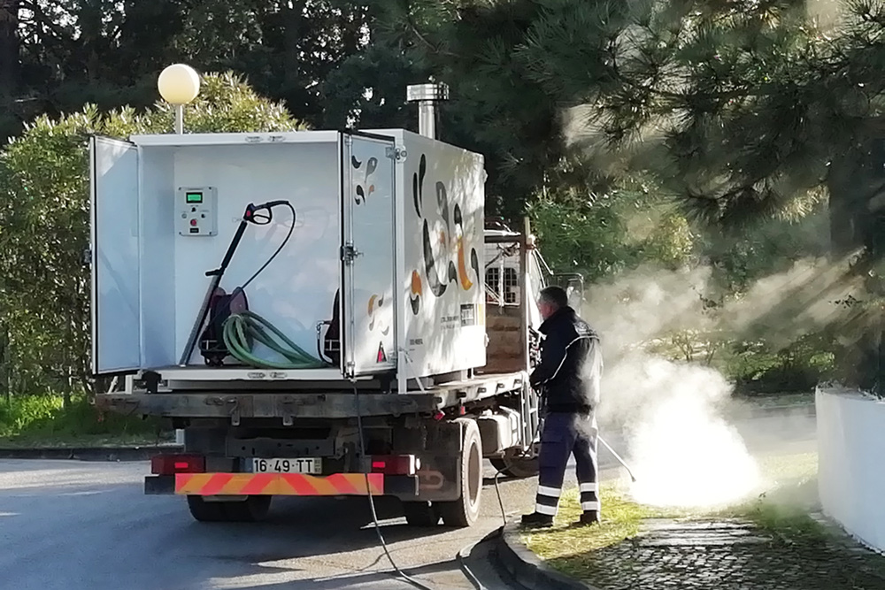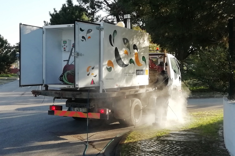Numa primeira fase, o equipamento de monda térmica está em utilização no território azeitonense e complementa o trabalho regular dos serviços da Junta de Freguesia de Azeitão em matéria de controlo de ervas infestantes em calçadas e noutros locais do espaço público.