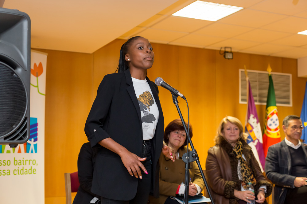 Num momento inspirador, Aline Martinho, moradora no Forte da Bela Vista, partilhou, em formato de testemunho, a experiência Nosso Bairro, Nossa Cidade. “Sou uma pessoa melhor”, afirmou a jovem estudante, ao destacar a importância deste programa no espírito de cidadania ativa. “Não desistam e continuem.”