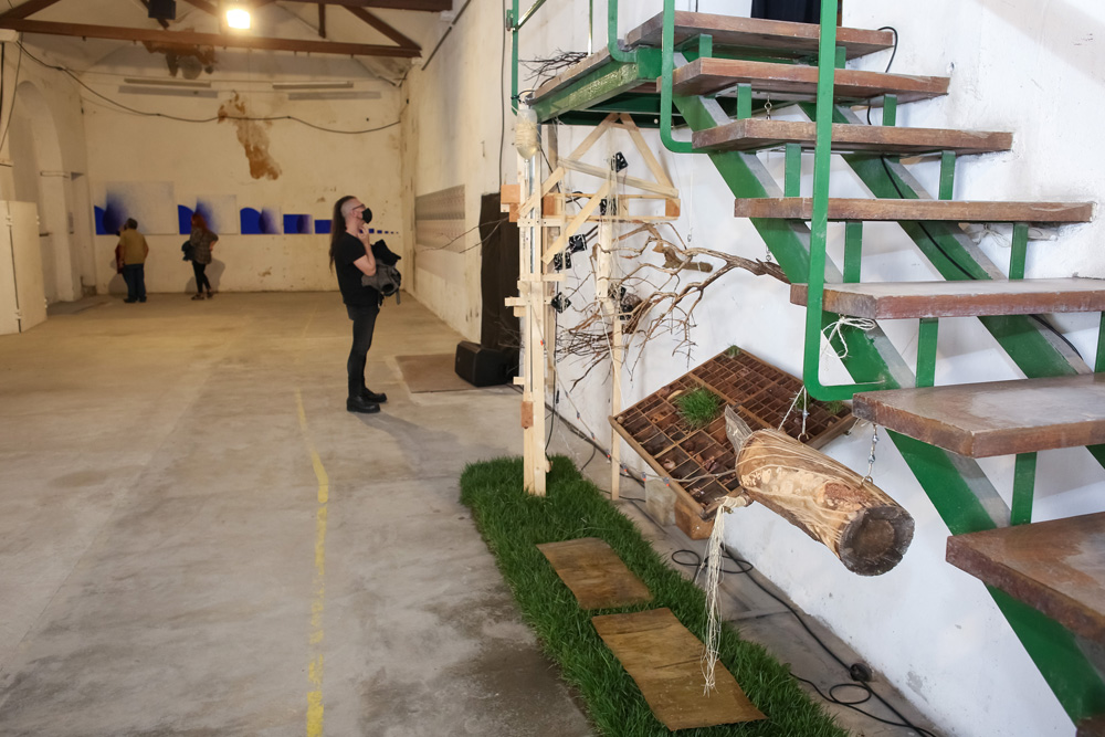 Outro dos trabalhos expostos é “Passo a Passo”, escultura sonora cinética em site specific, da autoria de Vítor Joaquim, figura de referência da música eletrónica de cariz exploratório no país.