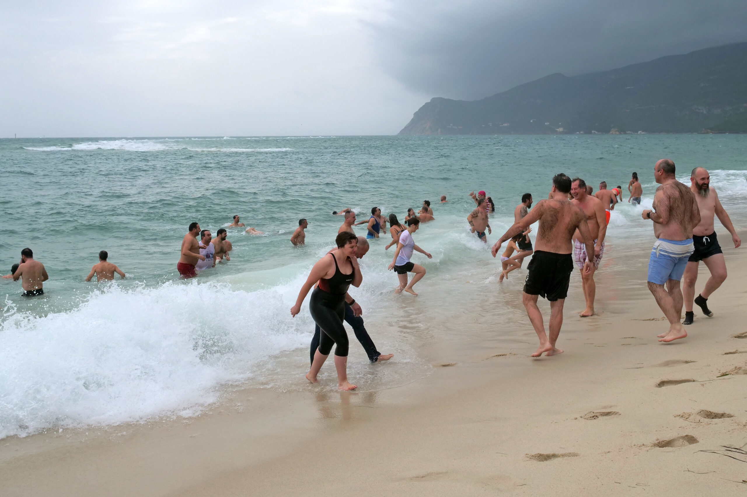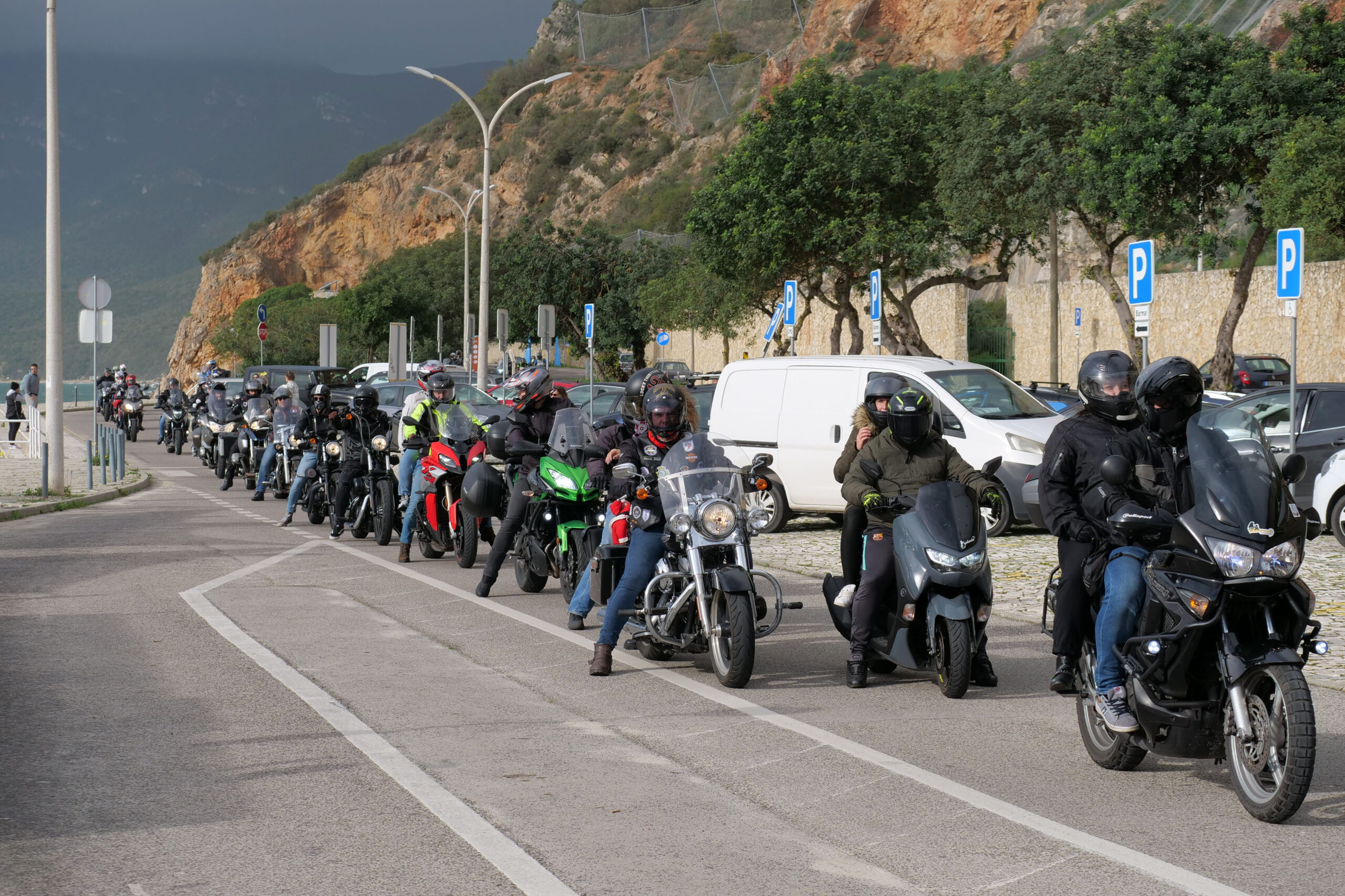O primeiro dia do ano começou com uma concentração na Praça de Bocage, de onde os motards partiram para um passeio na Arrábida, parando depois na Praia da Figueirinha, na qual dezenas de pessoas deram o primeiro mergulho do ano, às 11h00.