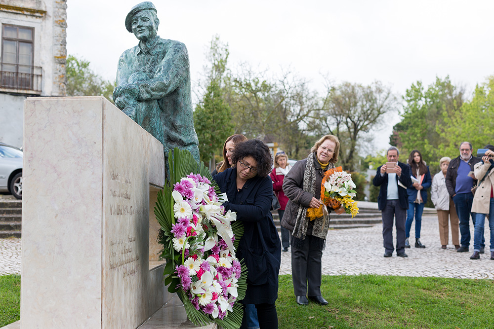 Coroas de flores na base do monumento, localizado na Praça da República, foram depositadas pela vereadora Eugénia Silveira, pela vogal da Junta de Freguesia de Azeitão Pascale Celina, em representação da presidente, e pela dirigente da Associação Cultural Sebastião da Gama Alexandrina Pereira.