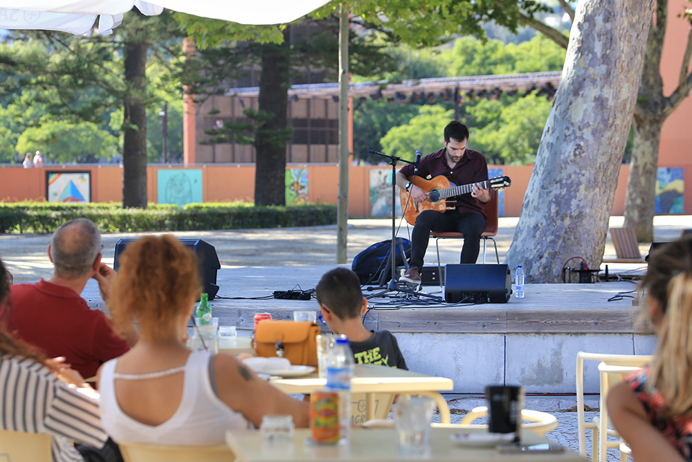 O músico setubalense Renato Sousa apresentou-se a solo, no dia 19, ao final do dia, na Casa do Largo – Pousada da Juventude, no terceiro concerto do ciclo Chillargo Sounds.
