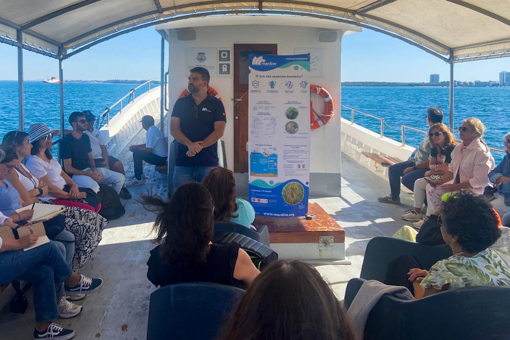 O programa incluiu ainda uma sessão com os investigadores da MARDIVE/MARE, Diana Rodrigues e Gonçalo Silva, que apresentaram a investigação “O Estuário do Sado e os seus Cavalos-Marinhos: Um Património a Preservar” a bordo da embarcação municipal “Maravilha do Sado”.