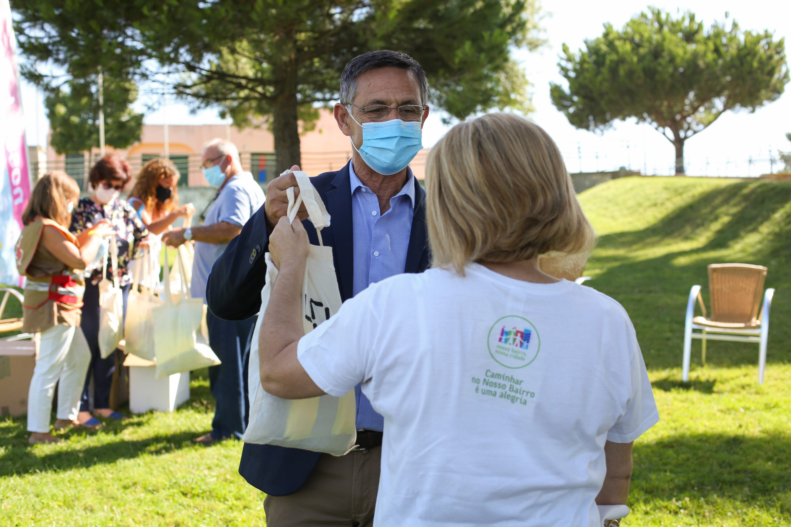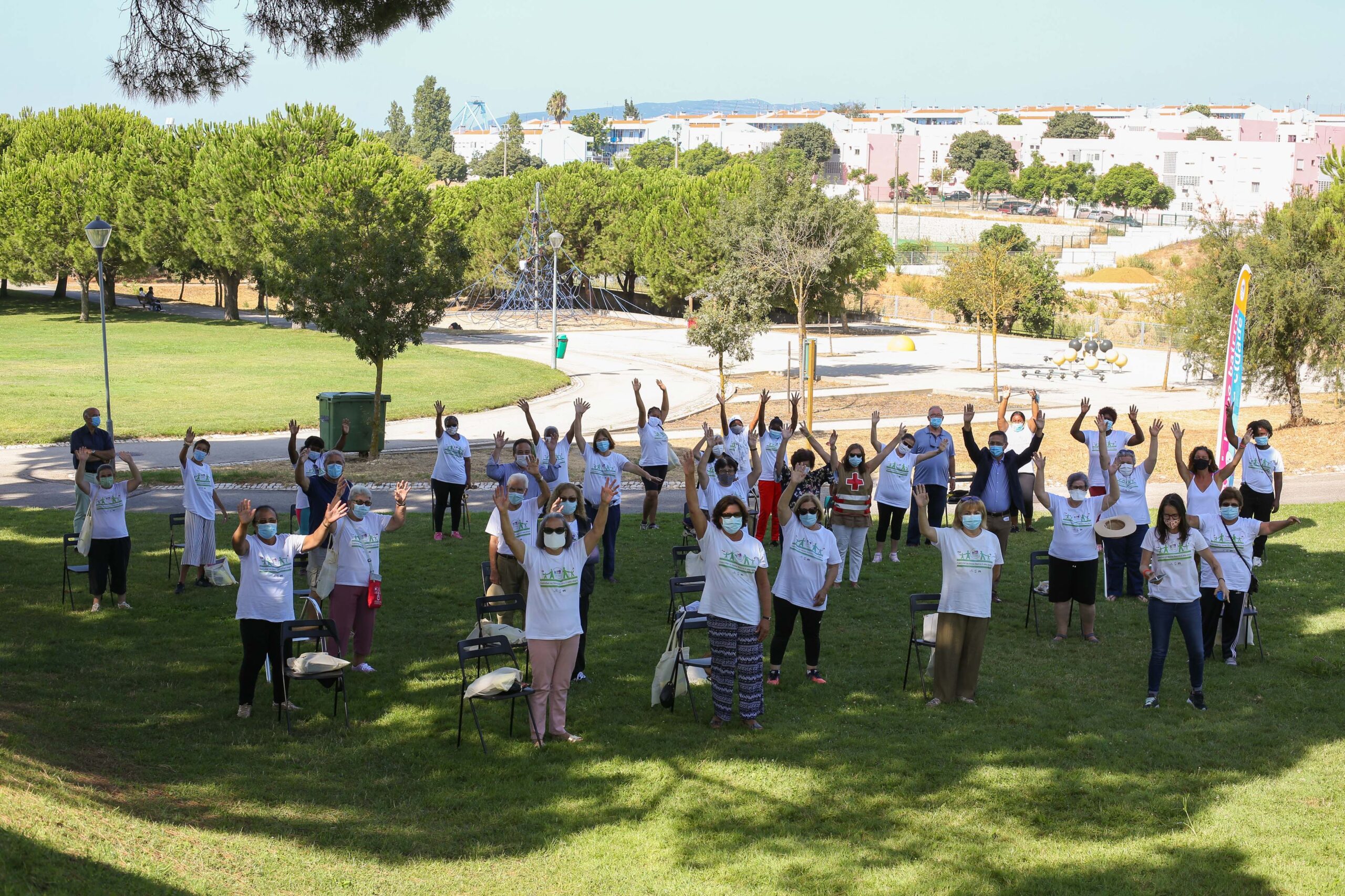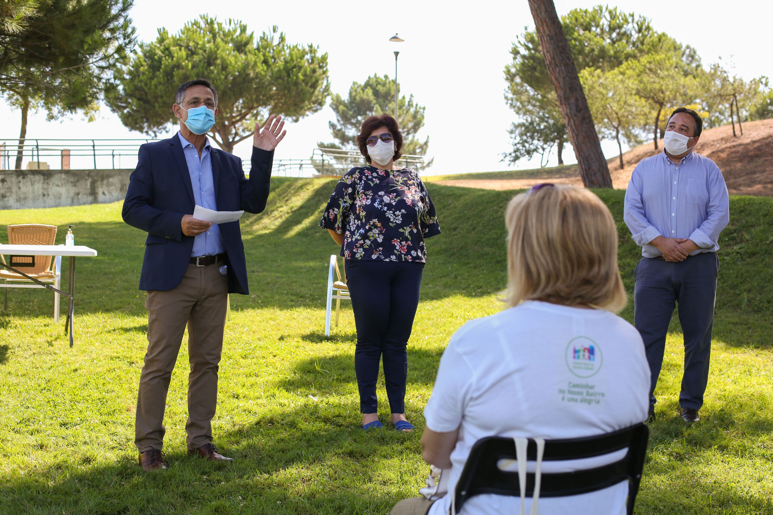 O encontro dos caminhantes no Parque Verde da Bela Vista não foi para os habituais passeios, mas para receberem, através do IPS – Instituto Politécnico de Setúbal, parceiro do projeto, o “Kit Caminhante”, constituído por uma toalha técnica, pensos rápidos, caderno, lápis e caneta para anotação de registos biométricos, uma t-shirt, colete refletor e uma bolsa de transporte.
