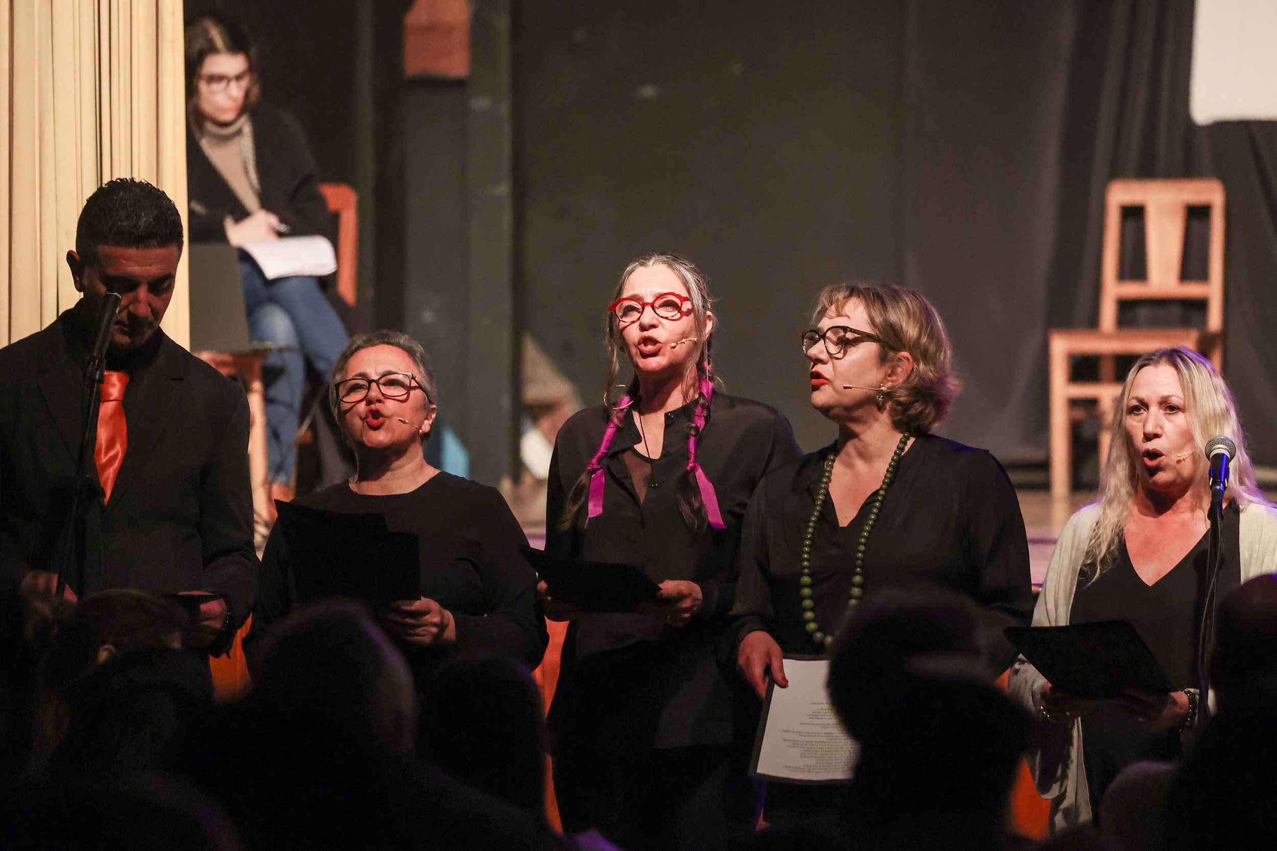 O grupo cénico, formado por trabalhadores da Câmara Municipal de Setúbal, apresentou textos que denunciam desigualdades e diferentes formas de violência e que destacam a força, a coragem, a resistência e os afetos do quotidiano das mulheres.