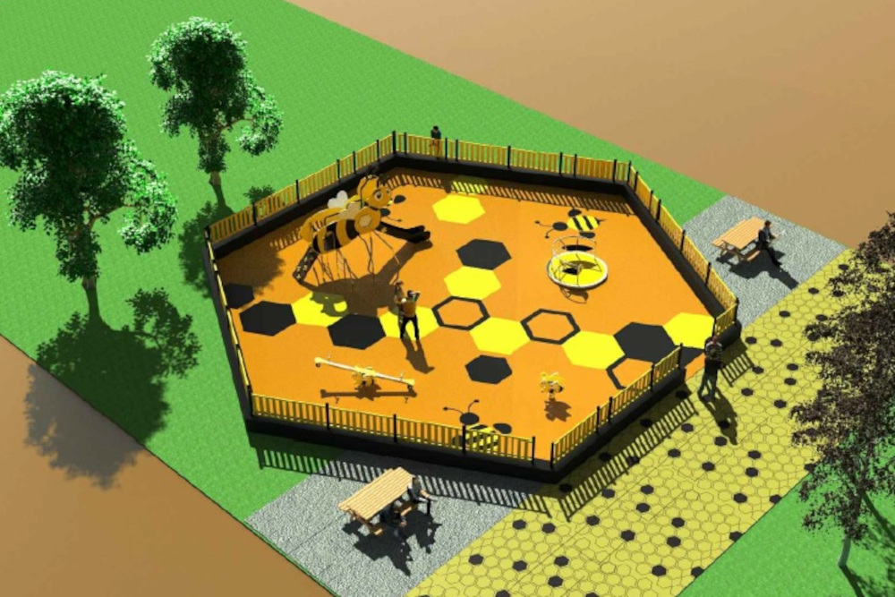 O Parque Infantil das Abelhinhas terá como componentes principais uma torre com escorrega e parede de escalada, uma mola, um balancé de dois lugares e um carrossel acessível a crianças com mobilidade reduzida.