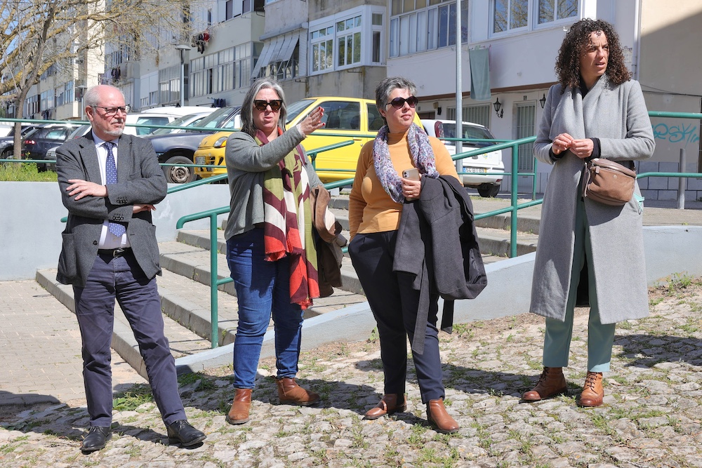 O presidente da Câmara – que esteve acompanhado da vice-presidente Carla Guerreiro e da vereadora do Urbanismo e da Mobilidade, Rita Carvalho – e Fátima Silveirinha visitaram depois o Largo Campo de Flores, no Bairro de São Gabriel, onde decorre uma requalificação do espaço público realizada em parceria pela Junta de Freguesia, que cede a mão de obra, e pela Câmara Municipal, que fornece os materiais.