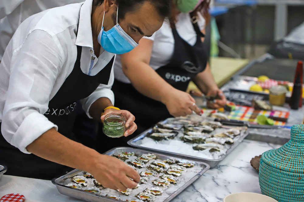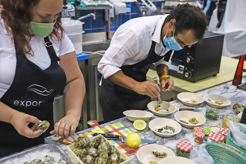 Ostra ao natural, com lima, leite de coco, chutney de manga e salicórnia, ao vapor, à Bulhão Pato, ao alhinho e com sabayon de Moscatel de Setúbal foram as seis receitas servidas durante o encontro, que assinalou o desfecho desta semana gastronómica.
