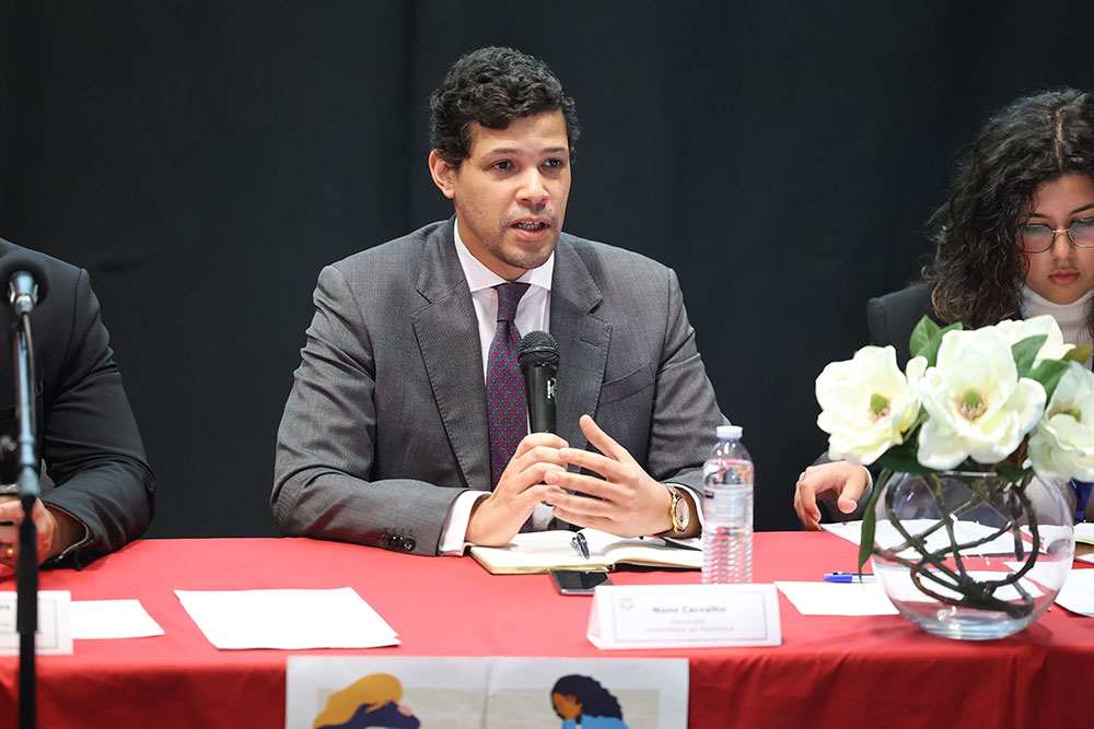 Para o delegado regional de Educação de Lisboa e Vale do Tejo, Bruno Santos, o Parlamento dos Jovens constitui um “momento de desafio democrático” para refletir sobre um problema para o qual é fulcral estar atento. “Não se vê a surgir e não se consegue diagnosticar com um registo comportamental no imediato.”