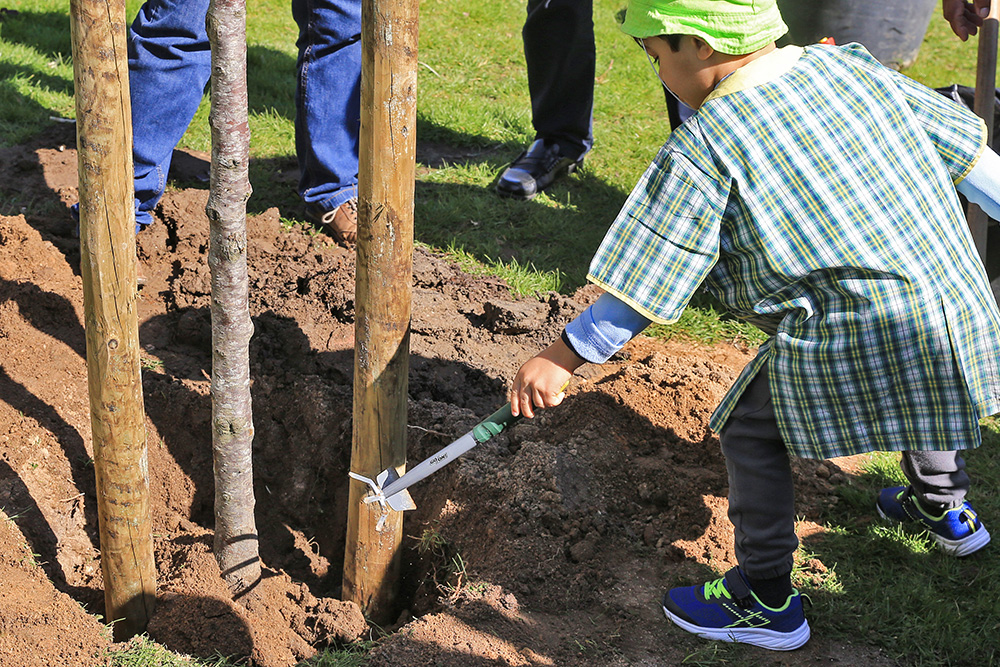 Teresa Lourenço, da Divisão de Espaços Verdes da autarquia, desafia os pequenos a colaborar e a resposta é positiva. “Vamos plantar uma árvore!”, gritam entusiasmados.