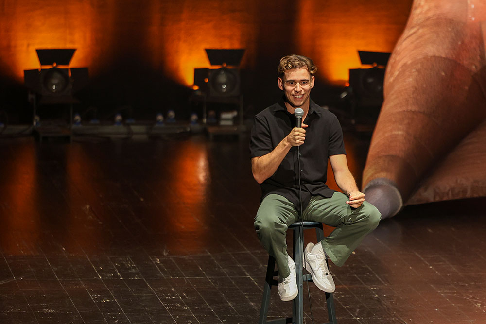 O espetáculo de stand-up esgotou a maior sala de espetáculos do concelho, composta, na esmagadora maioria, por jovens.