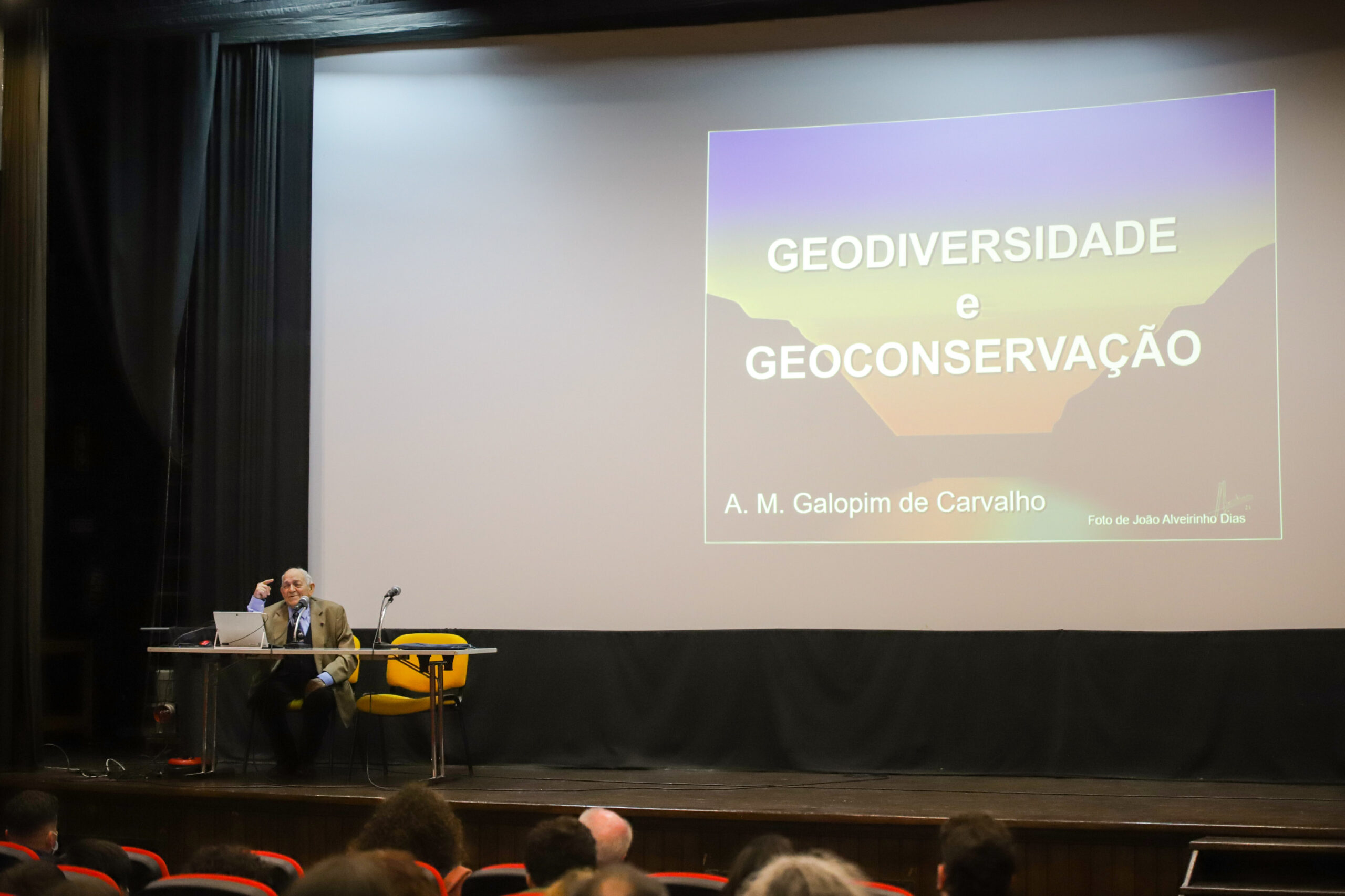 A palestra, realizada no Cinema Charlot – Auditório Municipal, com o tema “Geodiversidade e Geoconservação”, foi conduzida por Galopim de Carvalho, geólogo e professor catedrático jubilado, o grande impulsionador do interesse do público português pela temática dos dinossauros.