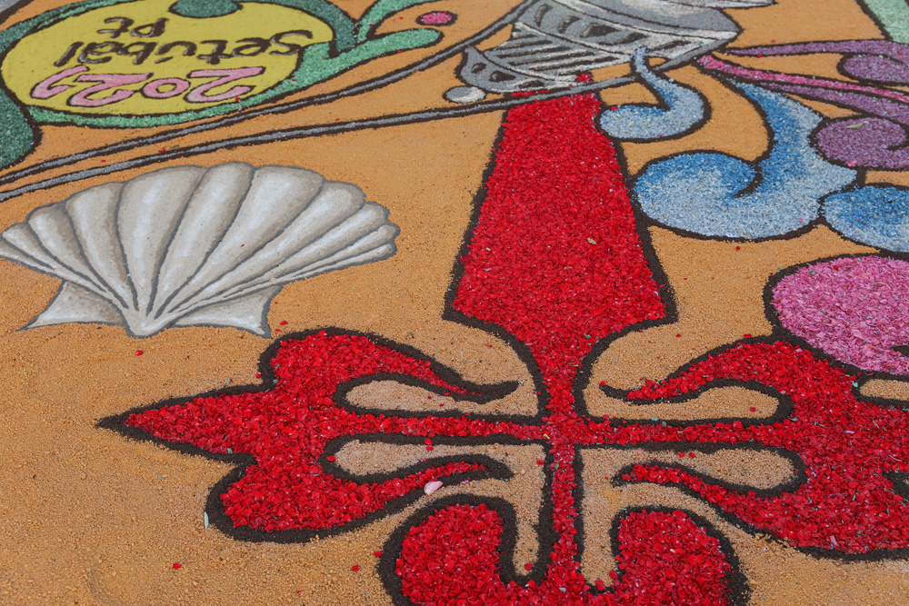 No âmbito das comemorações, destaque ainda para a arte efémera que inspirou a elaboração, ao longo deste sábado, no Largo de Santa Maria, em Setúbal, do “Tapete do Mundo”, com dois metros de comprimento e dois metros de largura, composto por flores, sal, areia e serradura.