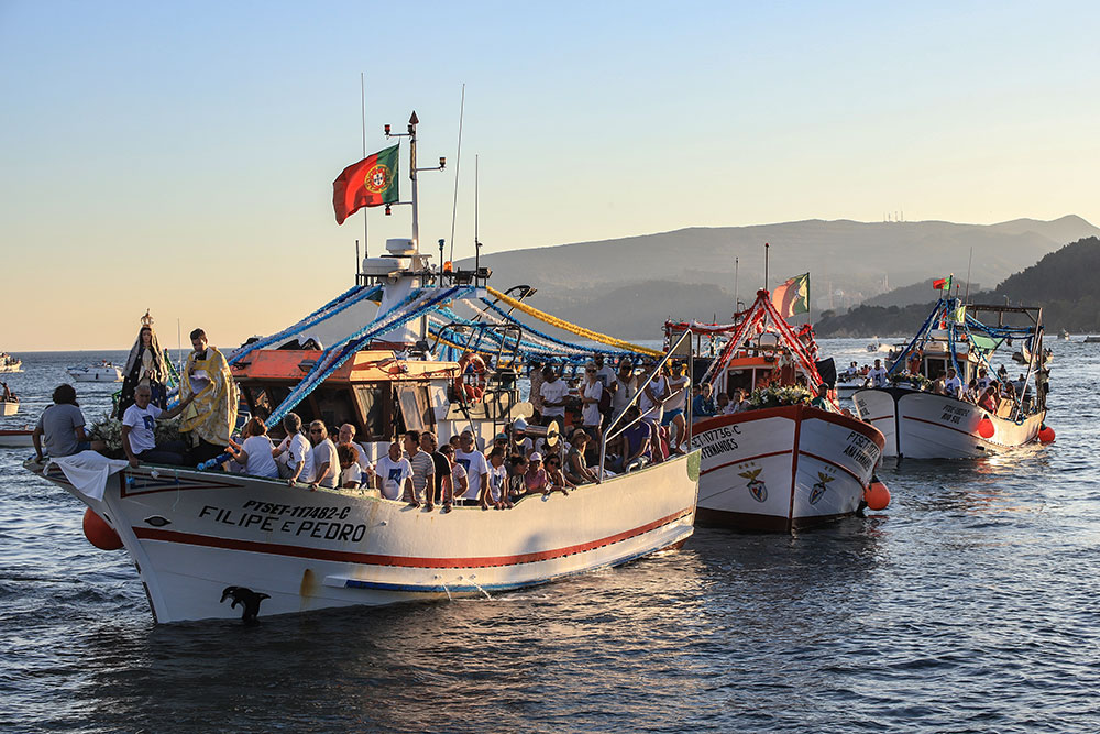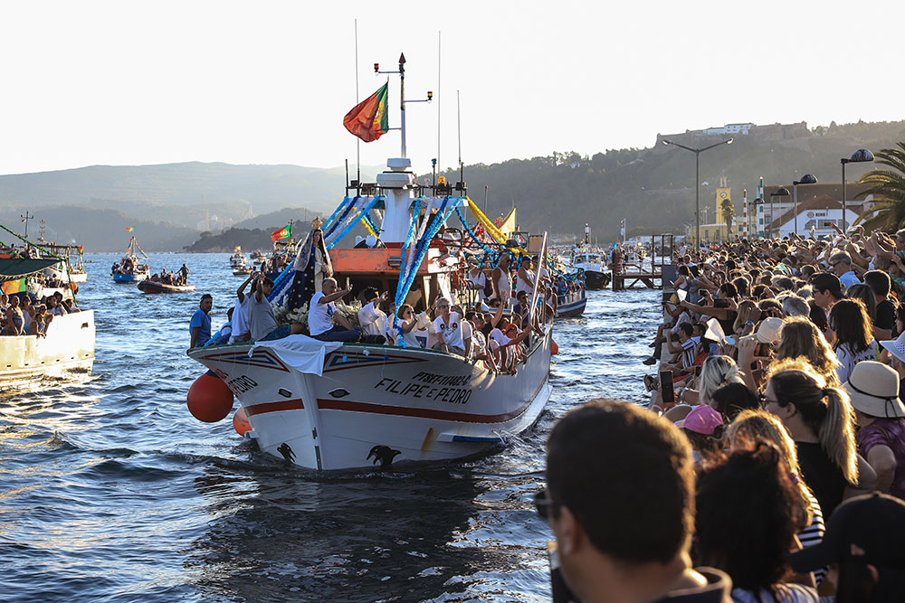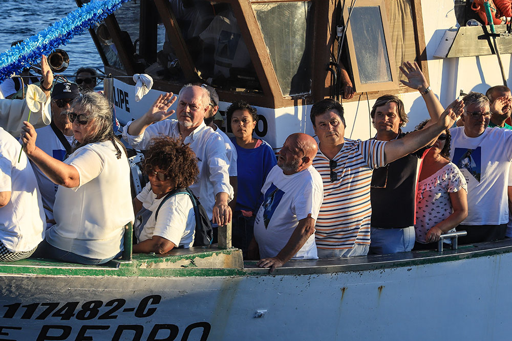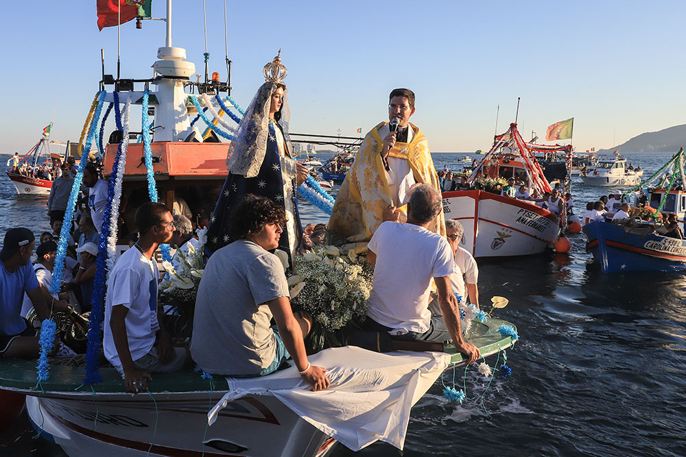 A imagem de Nossa Senhora foi transportada pelo barco de pesca artesanal Filipe e Pedro, no qual seguiam igualmente o presidente da Câmara Municipal, André Martins, responsáveis de juntas de freguesia do concelho, representantes da Igreja e diretores do Troia Resort.