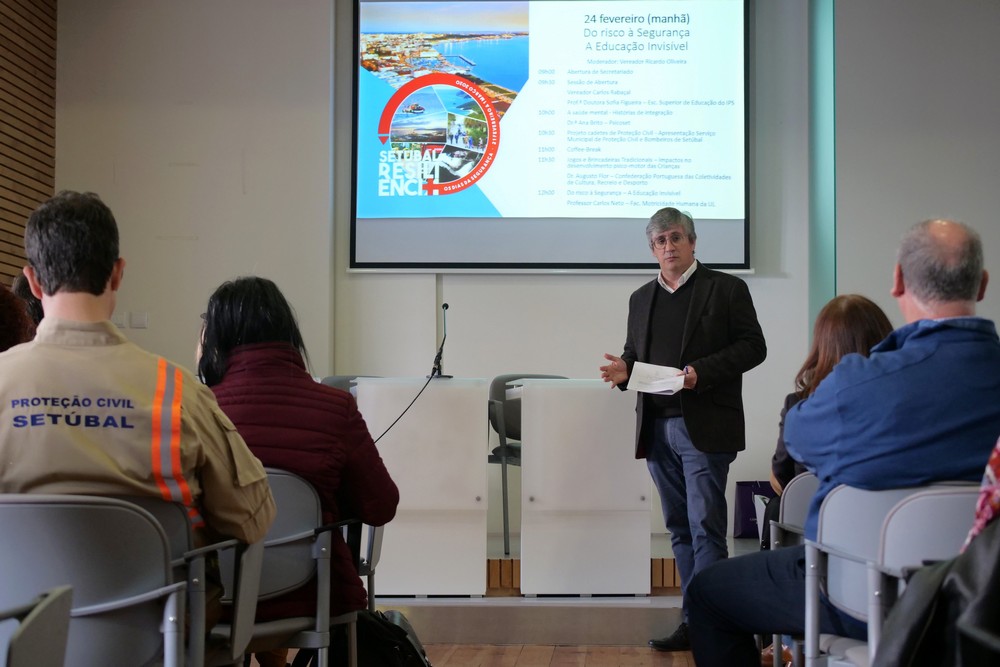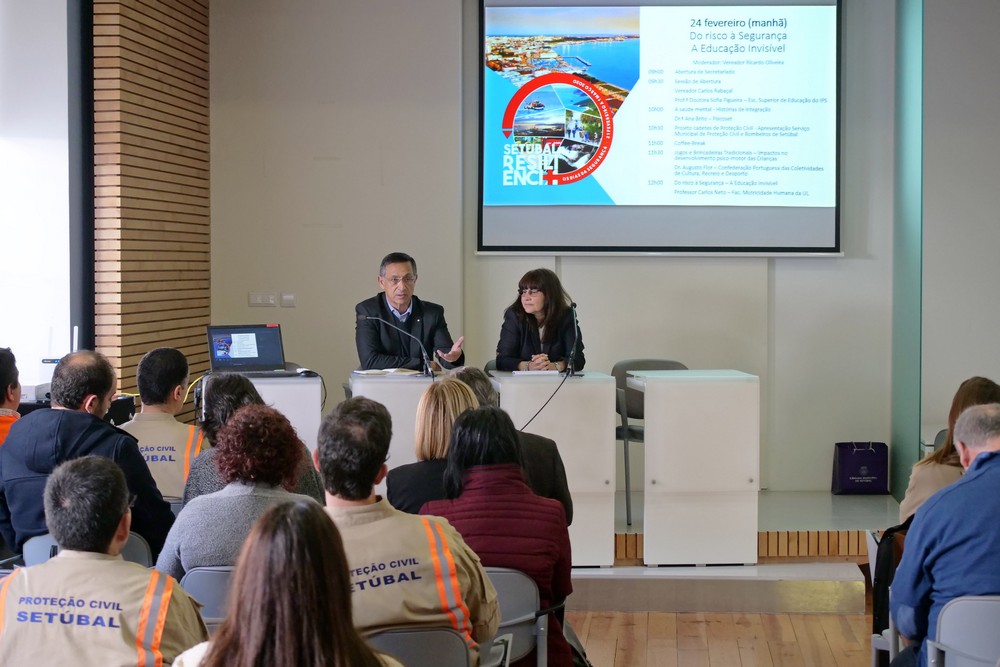 A conferência “Do Risco à Segurança – A Educação Invisível, vocacionada para questões relacionadas com crianças e adolescentes, contou ainda com a presença dos vereadores Carlos Rabaçal e Ricardo Oliveira, de Sofia Figueira, da Escola Superior de Educação do Instituto Politécnico de Setúbal, e de Ana Brito, da Psicoset.