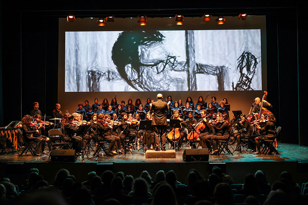 Sob a direção do maestro Raúl Avelãs, mais de cinco dezenas de músicos e cantores interpretaram um reportório de canções com arranjos e orquestrações do professor Jorge Moniz, numa seleção que dá uma perspetiva da diversidade que caracteriza a obra de José Afonso, ilustrando várias fases do seu percurso.